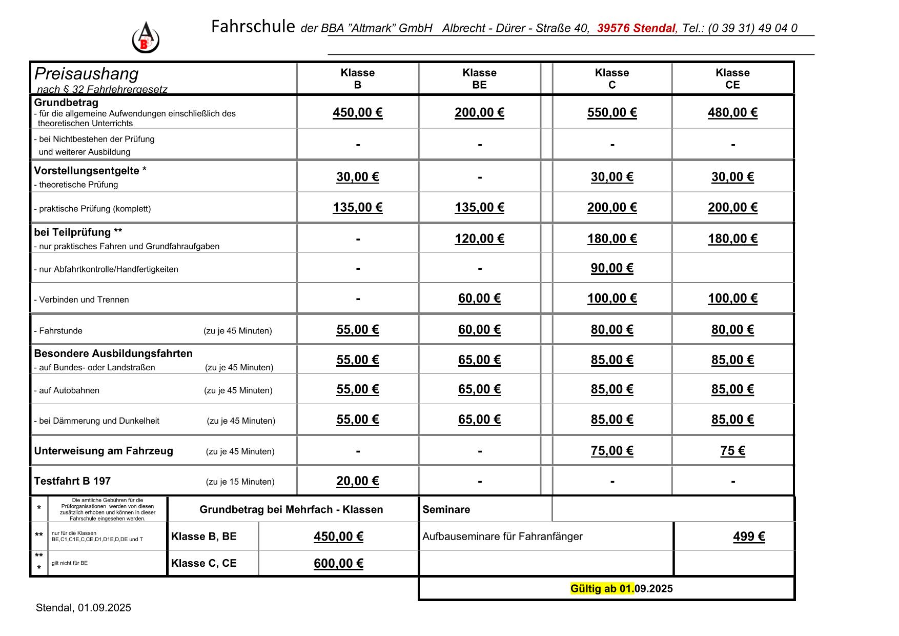 Download Preisliste    (Stand: 01.09.2025)